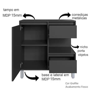Características adicionais: acompanha 1 porta, 2 gavetas, 1 nicho externo, dobradiças e corrediças metálicas