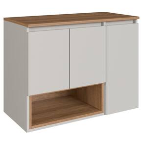 Características adicionais: Tampo em MDP 15mm, amplo espaço interno, nicho externo de acesso fácil, dobradiças metálicas