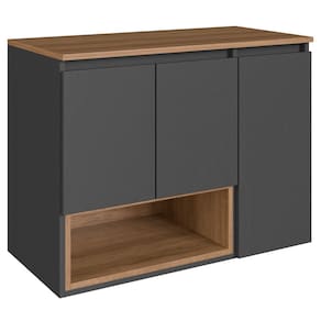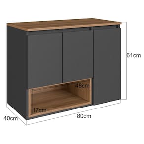 Características adicionais: Tampo em MDP 15mm, amplo espaço interno, nicho externo de acesso fácil, dobradiças metálicas
