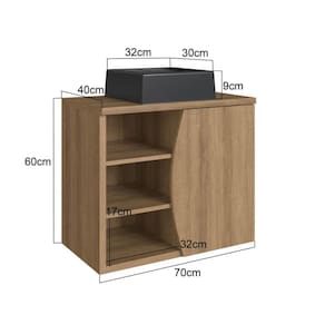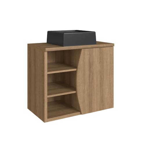 O gabinete para banheiro BL9680 é produzido em MDP 15mm e acabamento FF fosco. Possui 3 prateleiras que suportam 5 kgs cada, 1 porta com dobradiça metálica e tampo em MDP 25mm. Estrututa do fundo em 3mm. Produto suporta até 30kgs. Conteúdo da embalagem: móvel, ferragens e manual de montagem. Necessita fixação na parede e acompanha os parafusos para a fixação. A fixação das peças e/ou acessórios é feita por parafusos e cavilhas. Para uma limpeza mais efetiva, utilizar apenas pano macio umedecido e sabão neutro. Não utilizar produtos abrasivos. Garantia de 03 meses contra defeitos de fabricação. Medidas do produto (AxLxP): 60x70x40cm. Peso do produto: 24,70kgs. Produto acompanha cuba preta em mármore sintético. Marca: Não Informado