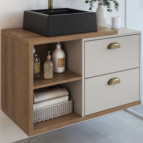 Não há nada mais interessante do que um Gabinete para Banheiro que una design e praticidade. Equipado com uma cuba em mármore sintético, e conta com duas gavetas com corrediças metálicas, dois nichos externos e puxadores modernos no formato de concha. A furação para instalação da válvula da cuba deve ser realizada durante a montagem. Este móvel chegará na sua casa separado em 02 volumes.