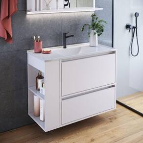 O gabinete para banheiro BL2002 é produzido em MDP 15mm e acabamento FF fosco. Possui 1 nicho lateral que pode ser montado tanto do lado esquerdo como direito do gabinete, 1 porta basculante com dobradiça metálica e pistão à gás e 1 gaveta com corrediça metálica e que suporta até 5kgs. Estrututa do fundo em 3mm. Produto suporta até 25kgs. Conteúdo da embalagem: móvel, ferragens e manual de montagem. Necessita fixação na parede e acompanha os parafusos para a fixação. A fixação das peças e/ou acessórios é feita por parafusos e cavilhas. Para uma limpeza mais efetiva, utilizar apenas pano macio umedecido e sabão neutro. Não utilizar produtos abrasivos. Garantia de 03 meses contra defeitos de fabricação. Medidas do produto (AxLxP): 61x80x38cm. Peso do produto: 25,3kgs. Produto acompanha lavatório branco em mármore sintético. Marca: Não Informado