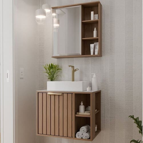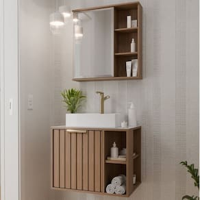 1x Espelheira para Banheiro 1 Porta Treviso Freijó Largura: 55,8 cm Altura: 62,6 cm Peso: 8,4 kg Profundidade: 14,8 cm Necessita Montagem: Sim