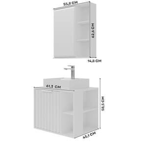 Largura do Conjunto: 61.3 cm Marca: MGM Móveis Material Principal: MDF Suporta Até (kg): 25 kg