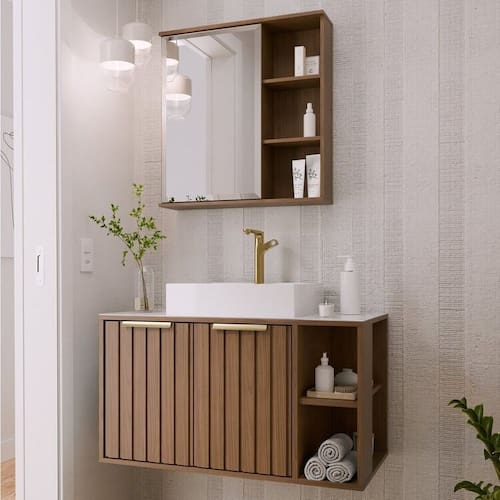 1x Espelheira para Banheiro 1 Porta Treviso Freijó Largura: 55,8 cm Altura: 62,6 cm Peso: 8,4 kg Profundidade: 14,8 cm Necessita Montagem: Sim