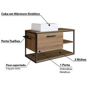 Sua estrutura é cuidadosamente elaborada em MDP 15 MM com acabamento Finish Foil, garantindo durabilidade e resistência. O tubo interno de 15 x 15 mm com Pintura Epóxi complementa a robustez do móvel. Acompanha uma cuba em Marmorite na cor branca, que se integra perfeitamente ao conjunto, proporcionando funcionalidade e facilidade na manutenção diária.