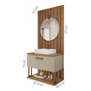 Características: Estrutura em MDF Acabamento em Pintura UV Puxador em cobre fosco 01 Porta com pistão à gás Dobradiças metálicas Acompanha cuba em mármore sintético Acompanha espelho com alça de couro