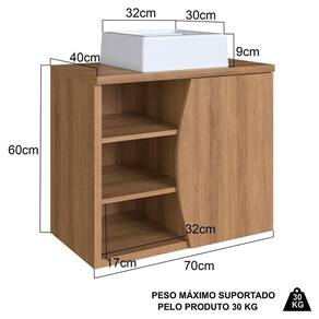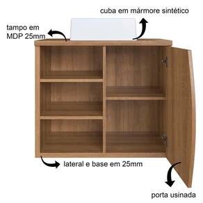 Características adicionais: Acompanha cuba em mármore sintético, 2 portas usinadas, 2 nichos externos, dobradiças metálicas