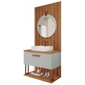Conjunto para Banheiro com Gabinete, Painel Ripado e Espelheira Mari Espresso Móveis é formado por Gabinete para Banheiro 100% MDF, Cuba em Mármore Sintético, Painel Ripado em MDF e Espelheira em MDF. Com amplo espaço interno, seu design e características garantem melhor e maior durabilidade ao produto. Aproveite e adquira já o Conjunto Mari Espresso Móveis para deixar o seu ambiente ainda mais charmoso, sofisticado e elegante. Altura do Conjunto: 117 cm Ambiente: null Ambiente Principal: Banheiro codigo_ean: 7900288195432 Cor: Pistache Cor do Produto: Pistache Informação Complementar: 1x Espelheira Para Banheiro Alça e Couro Lua Pistache Largura: 60 cm Altura: 60 cm Peso: 4,1 kg Profundidade: 1,5 cm Necessita Montagem: Não