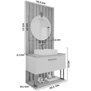 1x Gabinete Suspenso com Cuba 80,3cm X 73cm Mari Titanium Largura: 80,3 cm Altura: 73 cm Peso: 32,8 kg Profundidade: 44,8 cm Necessita Montagem: Sim