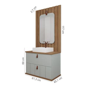 Características: Estrutura em MDF Acabamento em Pintura UV Puxadores e alça em couro 01 Porta com pistão à gás e dobradiças metálicas 01 Gaveta com corrediças telescópicas Acompanha cuba em mármore sintético Acompanha espelho Acompanha painel ripado