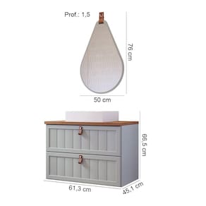 Características: Estrutura em MDF Acabamento em Pintura UV Puxador e alça em couro 01 Porta com pistão à gás e dobradiças metálicas 01 Gaveta com corrediças telescópicas Acompanha cuba em mármore sintético Acompanha espelho