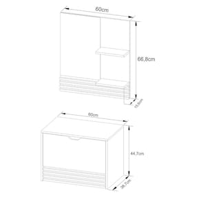 CARACTERÍSTICAS TÉCNICAS: - Produzida em MDP de 15 mm - Acabamento UV na cor Amêndoa e Mármore Lunar - Acompanha Espelho - Porta Basculante com Articulador e Dobradiças Metálicas - Gaveta com Corrediças Metálicas - Puxador tipo Cava - Balcão Suspenso *Cuba NÃO incluso, apenas demonstrativo *Kit Composto por Gabinete Suspenso (3613) e Espelheira (3614)