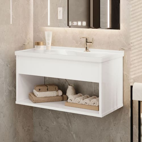 O Gabinete Armário de Banheiro Encanto com Cuba é a solução perfeita para organizar o espaço do seu banheiro, seu design prático permite que você organize seus pertences da forma que melhor lhe agradar. O móvel acompanha Cuba e possui um nicho para acomodar seus pertences.