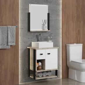 Gabinete Suspenso para Banheiro 54cm com Cuba em Mármore Sintético e Espelheira Denver Barrique/Br/Preto. Conjunto de Banheiro completo, suspenso, produzido em MDF e em MDP, contendo uma gaveta, uma porta,um nicho e uma prateleira inferior, acompanha cuba em mármore sintético e uma espelheira com prateleira. já acompanha buchas e parafusos para a fixação na parede, pois trata-se de móvel suspenso. Ean: 7909903447123