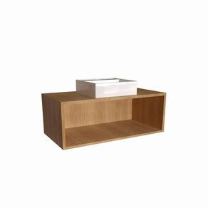 Gabinete Suspenso para Banheiro Com Cuba Branca 80cm 1 Porta Basculante Alice Mel/Arenas - Marrom