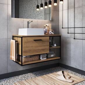 Solução completa: já vem com cuba em mármore sintético e porta-toalhas!