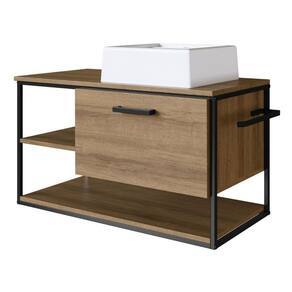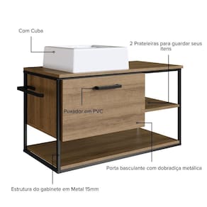 Gabinete Suspenso para Banheiro com Lavatório e Porta Basculante Mel - Tudo Incluso: Design, Cuba e Praticidade