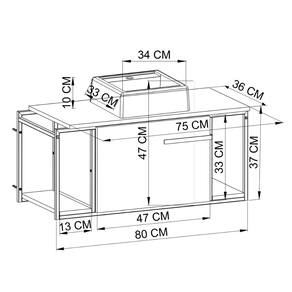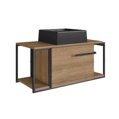 Garantia: 90 dias / Peso total: 15,870kg / Cor predominante: Preto e Mel / Ref: 7898270101755; Dimensões da gabine: 80cm (C) x 36cm (L) x 37cm (A); Dimensões da cuba: 34cm (C) x 33cm (L)x 10cm (A); Material: Metal 15mm; Conteúdo: 1 gabine para banheiro; Cuidados e Limpeza: para a limpeza do móvel utilizar pano levemente umedecido.