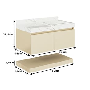 Possui uma prateleira em MDF que é ideal para fins decorativos ou armazenamento de objetos pessoais. Acabamento da Cuba: Polido Acabamento da Gaveta: Pintura UV Acabamento da Prateleira: Pintura UV Acompanha Cuba: Sim Acompanha Manual de Instalação: Sim Acompanha Parafusos Para Fixação Na Parede: Não Ambiente Principal: Banheiro codigo_ean: 7909903904480 Comprimento da Prateleira: 80 cm Cor: Capuccino Cor da Cuba: Branco Cor do Produto: Capuccino Cor Interna: Branco Escala de Brilho: Fosco Escala de Brilho da Gaveta: Fosco Escala de Brilho da Prateleira: Fosco Furação para Cuba e Torneira: Sim Gaveta com Chave: Não Itens Inclusos: 01 Manual de Instalação, 01 gabinete, 01 tampo em porcelanato com cuba embutida, prateleira em mdf Linha ou Coleção: Melissa Manual de Montagem e Instalação: https://product-hub-prd.madeiramadeira.com.br/937474/documents/b0aa5781-7631-40e6-a6e6-9bbcc695b7f12279168371917249559901849.pdf Material da Cuba: Cerâmica Material da Gaveta: MDF Material da Prateleira: MDF Material Principal: MDF Medida da Cuba (C x L x P): 36x25x12 Necessita Montagem: Não Origem do Produto: Nacional Peso: 33,5 kg Peso Máximo por Gaveta: 15 kg Peso Máximo por Prateleira: 25 kg Possui Nichos: Não Possui Pés: Não Possui Portas: Não Possui Prateleiras: Sim Possui Recorte No Tampo Para Cuba: Não Possui Recorte No Tampo Para Misturador: Não Possui Sifão: Não Possui Tampo: Sim Produto Montado: Não Quantidade de Gavetas: 02 Recomendações de Uso, Manutenção e Limpeza: Utilize flanela seca ou pano macio, levemente umedecido com água. Evite contato com produtos químicos e abrasivos (solventes, thinner, acetona etc) e não utilize nenhum tipo de esponja de aço. Resistente à Chuva: Não Suporta Até (kg): 40 kg Tipo de Corrediça da Gaveta: Metálica Telescópica Tipo de Móvel para o Banheiro: Gabinete de Banheiro Tipo de Puxador da Gaveta: Embutido Tipo do produto: gabinete/toucador Válvula indicada: 4