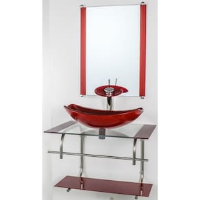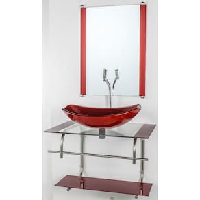 Gabinete de vidro para banheiro inox 70cm cuba oval chanfrada vermelho cereja Os nossos gabinetes são indicados para projetos arrojados e de muito bom gosto, além de valorizar o seu ambiente com sofisticação em uma decoração de alto padrão, ele consegue usufruir das vantagens que o vidro proporciona e gerar uma durabilidade indiscutível, sem contar que com as várias opções de cores, você sempre poderá encontrar uma cor perfeita para o seu banheiro. Itens inclusos: - bancada de vidro com furo para instalação da torneira 3,5cm diâmetro e da válvula click 4,5cm diâmetro ; - cuba de vidro oval chanfrada; - espelho; - estrutura e porta toalha de inox, esse suporte não enferruja e tem alta resistência a umidade; - kit parafusos completo para instalação; - prateleira de vidro da bancada; - válvula click. Dimensões: - bancada de vidro: 70 x 45cm largura x profundidade ; - cuba de vidro oval chanfrada: 46 x 31cm comprimento x largura ; - prateleira bancada: 70 x 25cm largura x profundidade ; - espelho: 70 x 45cm largura x altura ; - porta toalha: 70cm largura ; - válvula: 1 1/4. Espessuras: - bancada de vidro: 8mm; - cuba de vidro: 10mm; - prateleira bancada: 6mm; - espelho: 3mm. : 12 meses conforme política de troca e devoluções . Atenção: preço referente somente ao gabinete, não acompanha torneira. Montagem: montagem e instalação não inclusa na venda ou preço do produto, elas são de inteira responsabilidade do cliente. Imagens ilustrativas.