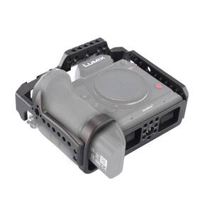 A Gaiola Cage Mamen T1-S1H para Câmera Panasonic Lumix S1H é uma estrutura de proteção de alta qualidade que permite que você adicione vários acessórios à sua Mirrorless Panasonic S1H. Feita de liga de alumínio espacial, a Gaiola Cage Mamen T1-Lumix S1H possui inúmeras roscas de 1/4, 3/8, bem como montagem estilo ARRI e uma entrada de sapata fria para adicionar diferentes acessórios.O acesso aos controles, compartimentos e conectores da Câmera Panasonic é mantido mesmo quando a gaiola é instalada. Além disso, esta Gaiola Cage para Panasonic é versátil e incorpora um encaixe fácil do parafuso da câmera e pequenas almofadas de borracha para um ajuste confortável e seguro. A gaiola mamen também possui uma chave Allen incluída para ajudar a apertar o parafuso da câmera.Características: Modelo exclusivo para Câmera Panasonic Lumix S1H Múltiplas interfaces de montagem para acessórios Roscas de 1/4 e 3/8, furos de fixação estilo ARRI e sapata fria Design prático, compartimentos desobstruídos e acesso à bateria Parafuso de 1/4 na parte inferior para fixação da câmera Feita de Liga de Alumínio, acabamento requintado, resistente e durávelCompatibilidade:Câmera Panasonic Lumix S1H MirrorlessImagens Ilustrativas.