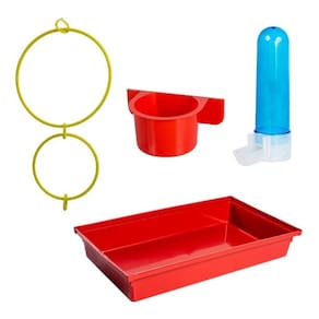 Itens inclusos na embalagem: Armação 01 comedouro 01 bebedouro 02 argolas 01 poleiro interno grande 01 poleiro externo pequeno 01 bandeja grande 01 grade aramada que separa a ave dos dejetos 02 suportes para poleiros 01 bandeja pequena