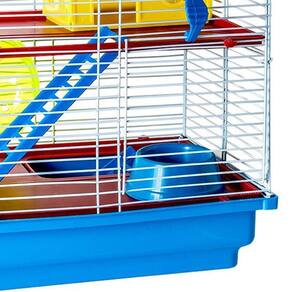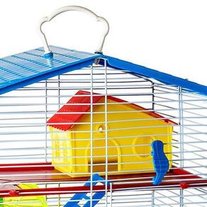 A gaiola conta com dois andares de plástico, proporcionando mais espaço para o hamster se movimentar e explorar. Acompanha escadinhas, comedouro, rodinha acrílica, casinha e bandeja removível, facilitando a limpeza e oferecendo conforto e entretenimento ao seu pet.