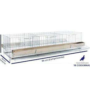 A gaiola para codorna grande tem 3 divisórias internas e capacidade para até 18 codornas (6 codornas em cada divisória), dependendo do tamanho e da forma de acondicionamento dos animais.