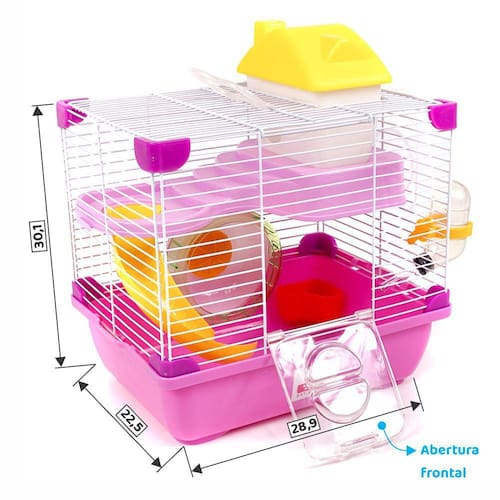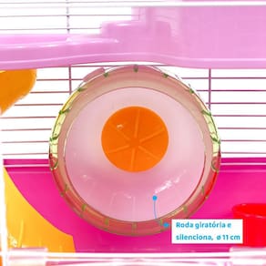 Especificações: * Manual de instruções; * Dimensões do produto montado (altura x largura x comprimento): 30,1 x 22,2 x 28,9 cm; * Para todas as espécies de hamster, esquilo-da-mongólia ou gerbil; * Casinha removível; * Plataforma de obstáculos; * Roda giratório silenciosa; * Escorregador; * Duas portinhas antimordidas; * Bebedouro e comedouro; * Alça de transporte; * Clipes em L para a gaiola ser montada facilmente; * Fechaduras embutidas para garantir que as malhas estejam conectadas firmemente com a base; * Fácil limpeza.