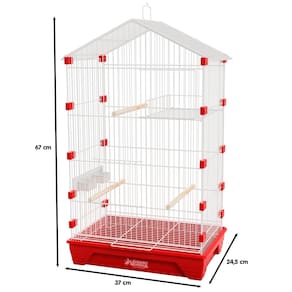 Dados técnicos: Largura: 37 cm Altura: 67 cm Profundidade: 24,5 cm Espaçamento entre malhas: 13 mm Arame BTC Zincado Plástico polipropileno e ABS Produto acompanha manual Indicado para Periquitos Marca: Não Informado