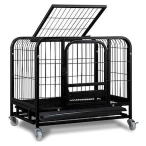Esta gaiola com bandeja possui uma porta frontal para animais de estimação entrarem e saírem, e uma claraboia para animais de estimação acessarem facilmente a alimentação de lanches, para que seu animal de estimação esteja bem alimentado enquanto estiver na gaiola.