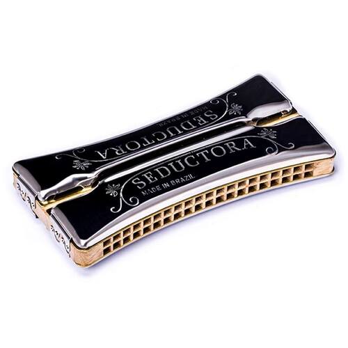 Gaita de Boca Harmônica Seductora 7980 Tipo: Oitavada Chapa: Latão com espessura de 0,90mm Corpo: Cobertura de aço inox, corpo de madeira em verniz Vozes: 80 Afinação: C Dó / G Sol A Hering: Em agosto de 1923 Alfred HERING, um imigrante alemão, fundou em Blumenau, uma cidade de colonização alemã no sul do Brasil, a Fábrica de Gaitas Alfred HERING, e o produto inicialmente fabricado foi a Harmônica de boca. Os negócios foram evoluindo e em 1940 aconteciam às primeiras exportações. Em 1966 a família HERING vendeu as suas ações para a HOHNER da Alemanha, empresa esta que foi sua proprietária até 1979 quando novamente foi adquirida por grupos brasileiros. Nestes 13 anos novas tecnologias vindas da HOHNER alemã foram incorporadas, melhorando ainda mais as já boas harmônicas HERING. Em 1996 as harmônicas HERING passaram a ser fabricadas pela Fábrica de Harmônicas Catarinense Ltda. Adquirimos e comercializamos somente produtos adquiridos das importadoras oficiais das marcas. : 3 meses pelo Importador / Fornecedor Marca: Não Informado Ean: 7896803009547
