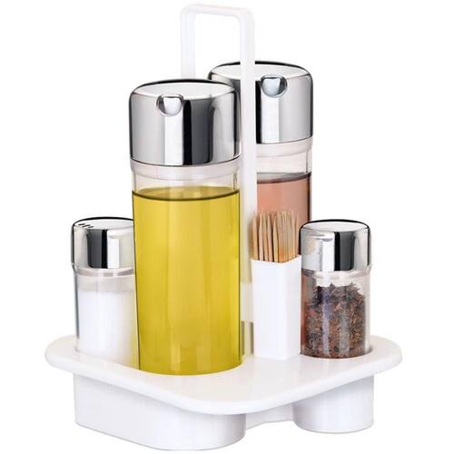Adicione estilo e funcionalidade à sua mesa com o Galheteiro 5 Peças da Monte Líbano. Este conjunto elegante e prático é ideal para quem valoriza tanto a estética quanto a utilidade na hora de servir. Cada peça é cuidadosamente projetada para facilitar o acesso aos condimentos essenciais durante as refeições.