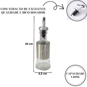 A Garrafa de vidro é revestida em aço inox com tampa de plástico para servir azeite ou vinagre, vem com o bico dosador e uma excelente vedação. Ele serve também para deixar na mesa de jantar para temperar uma salada ou regar o azeite sobre o alimento já pronto. Além de ser muito lindo, de ótima qualidade e acabamento o corpo é feito em vidro e revestido em aço inox, o que deixa tudo mais sofisticado e adequado para sua mesa de jantar.