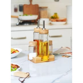 Galheteiro Em Bambu Com 5 Peças Kenya Sinônimo de bom gosto e diversidade, a marca brasileira Kenya é uma ótima opção para os adeptos do design e praticidade. A Kenya oferece produtos com excelente custo-benefício para os principais ambientes da casa, sala de jantar e decoração, cozinha e forno. Simplicidade e elegância compõem o DNA da marca, que traz a cada coleção novidades alinhadas com as últimas tendências do mercado mundial. A Kenya é uma marca jovem e como qualquer jovem, traz consigo a juventude e o novo.Especificações do produto:-Item útil e elegante para organização na cozinha-Material ecológico, biodegradável e altamente renovável, sendo uma escolha sustentável para utensílios de cozinha-Inclui peças práticas para armazenar e servir azeite, vinagre, sal e pimentaFicha técnica:- Código: 4081460298- Marca: Kenya- Conteúdo da Embalagem: 5 Peças- Material: Vidro e bambu- Peso: 0,880kg- Dimensões: 23cm x 13cm x 15cm (AxLxP)- Garantia: 90 Dias Altura - 23cm Largura - 13cm Profundidade - 15cm Peso - 0,880kg