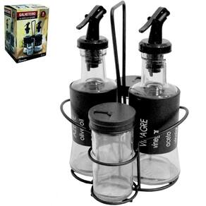 Galheteiro sofisticado em vidro com design moderno. Conjunto completo com 4 peças funcionais. Dois frascos de 200ml ideais para azeite e vinagre. Dois frascos menores de 85ml perfeitos para sal e pimenta. Acompanha suporte aramado na cor preta. Estrutura resistente que mantém as peças organizadas. Vidro transparente para fácil identificação do conteúdo. Frascos com tampas práticas que evitam desperdícios. Solução elegante para servir temperos à mesa. Combinação de vidro e metal que transmite sofisticação. Compacto e funcional, cabe em qualquer mesa ou bancada. Mantém condimentos essenciais sempre à mão. Ideal para uso diário ou ocasiões especiais. Fácil de limpar e higienizar no dia a dia. Ótima opção para presentear amantes da culinária. Estilo contemporâneo que combina com diferentes ambientes. Suporte aramado black confere um toque moderno. Excelente para restaurantes, lanchonetes e residências. Organização prática que valoriza sua mesa posta. Leve e portátil, podendo ser levado a eventos e jantares. Frascos resistentes, feitos para longa durabilidade. Perfeito para armazenar azeite, vinagre, óleo e molhos. Frascos menores ideais para temperos em pó ou líquidos. Ajuda a manter a cozinha mais prática e funcional. Um galheteiro versátil, elegante e indispensável no dia a dia. Marca: Não Informado Ean: 7899488166970