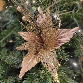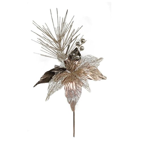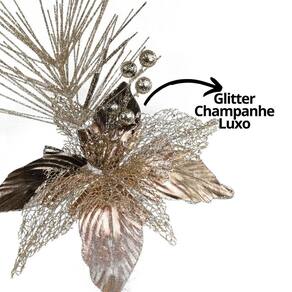 Galho Flor Natal Bico de Papagaio Glitter Champanhe 28cm