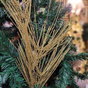 Galho Decorativo Natal Espetos Luxo Glitter Dourado 40cm