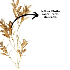 Transforme sua decoração natalina com o galho decorativo de folhagens dourado metalizado, uma peça elegante e versátil para compor arranjos festivos, guirlandas ou enfeitar a árvore de Natal com brilho e sofisticação.