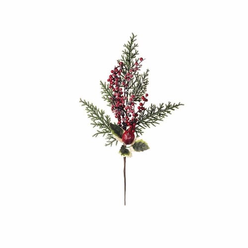 Galho Medio Nevado Com Folhas E Frutas Vermelhas - Composição/Matéria Prima - 70% Plástico 30% Metal - Cor Predominante - Vermelha/Verde - Cod. Cromus - 1470588 - Instruções Adicionais e Limpeza - Limpar com pano macio e seco