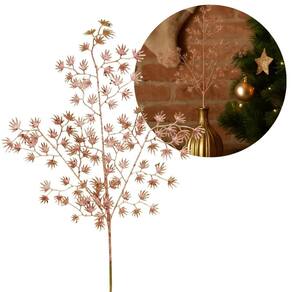 Galho Decorativo Natalino Multi Folhagens Glitter Rosê Gold – 80cm x 30cm