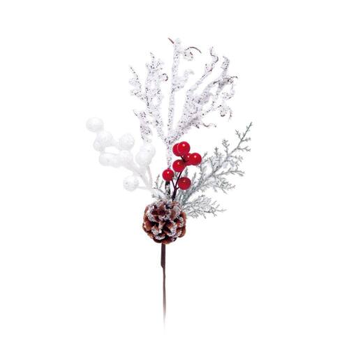 Galho Frutas Vermelhas, Frutas Brancas e pinha - Embalagem de Venda: 1 UN - Cor Predominante: VERMELHO / MARROM / BCO - Instruções de Limpeza: Limpar somente com pano macio levemente umedecido com água. - Composição: Plástico, Poliéster, Metal, Isopor e Papel.