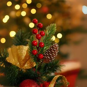 Dê mais charme e sofisticação à sua decoração de Natal com este galho decorativo estilo pick, composto por folhagens realistas, 1 pinha natural de 8cm com efeito nevado e azevinhos vermelhos vibrantes que trazem cor e vida ao ambiente.