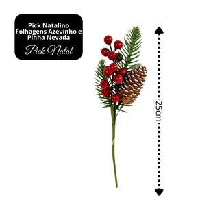 Pick Natalino Pinha Nevada e Azevinhos 25cm