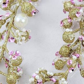 Galho Pérolas Rosa E Dourado 33x3cm Folhagem De Natal 3pc Vem decorar, seja INIGUAL