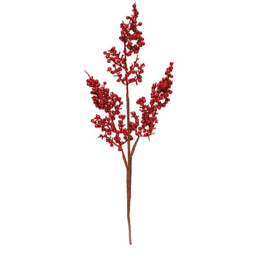 Galho frutas vermelhas - Cor Predominante: VERMELHO - Materia Prima: 100% Plástico - Instruções de Limpeza: Limpar apenas com pano macio e seco. - Destaques: Acrescente uma nova textura a sua árvore de Natal com galhos, espalhe alguns por toda árvore, combine cores e folhagens e dê seu toque especial! Eles também seriam perfeitos para usar em arranjos, guirlandas e peças centrais!