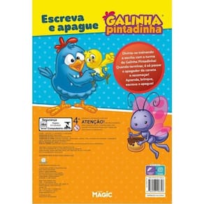 Este livro interativo permite que os pequenos fãs da Turminha mais amada do Brasil desenhem, apaguem e criem novamente com uma lousa mágica especial. Com ilustrações coloridas dos adoráveis personagens da Galinha Pintadinha e suas músicas animadas, as crianças podem explorar e aprender de forma lúdica.