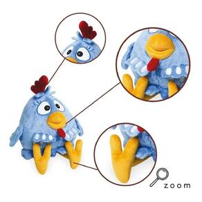 Liberada para bebês a partir de 2 meses, fabricada em material antialérgico, idêntica a personagem dos desenhos, a pelúcia da Galinha Pintadinha da Baby Brink é MUITO MACIA e gostosa de apertar