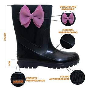 Galocha Infantil Impermeável 25ao32 Bota Feminina Laço 09.21 - 27-28 - Preto